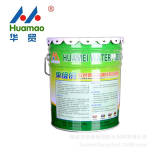 本产品为彩色、非焦油绿色环保防水涂料。冷施工,工艺简便,维修方便,可在常温下对平屋面及各种结构复杂的部位进行施工,整体成膜性好,无接缝,具有橡胶弹性,延展率高,足能适应基层的裂缝及变形,适用范围广,可在迎水、背水处使用,是一级防水的理想材料。使用寿命长,耐候、耐老化、耐油污及一定的耐酸碱性,性能稳定。 “华美”牌单组分聚氨酯防水涂料,是以聚醚多元醇为基本成分,非焦油沥青等助剂为添加剂的环保型液态弹性防水涂料,它与空气中的水汽接触后固化,在基层表面形成一层柔韧、坚固的无接缝的整体防水膜。涂膜与混凝土等基层有着非常好的粘结力,能有效防止水在防水涂膜下串流,其固有的柔性能抵抗任何可能发生的结构变形和收缩裂缝。