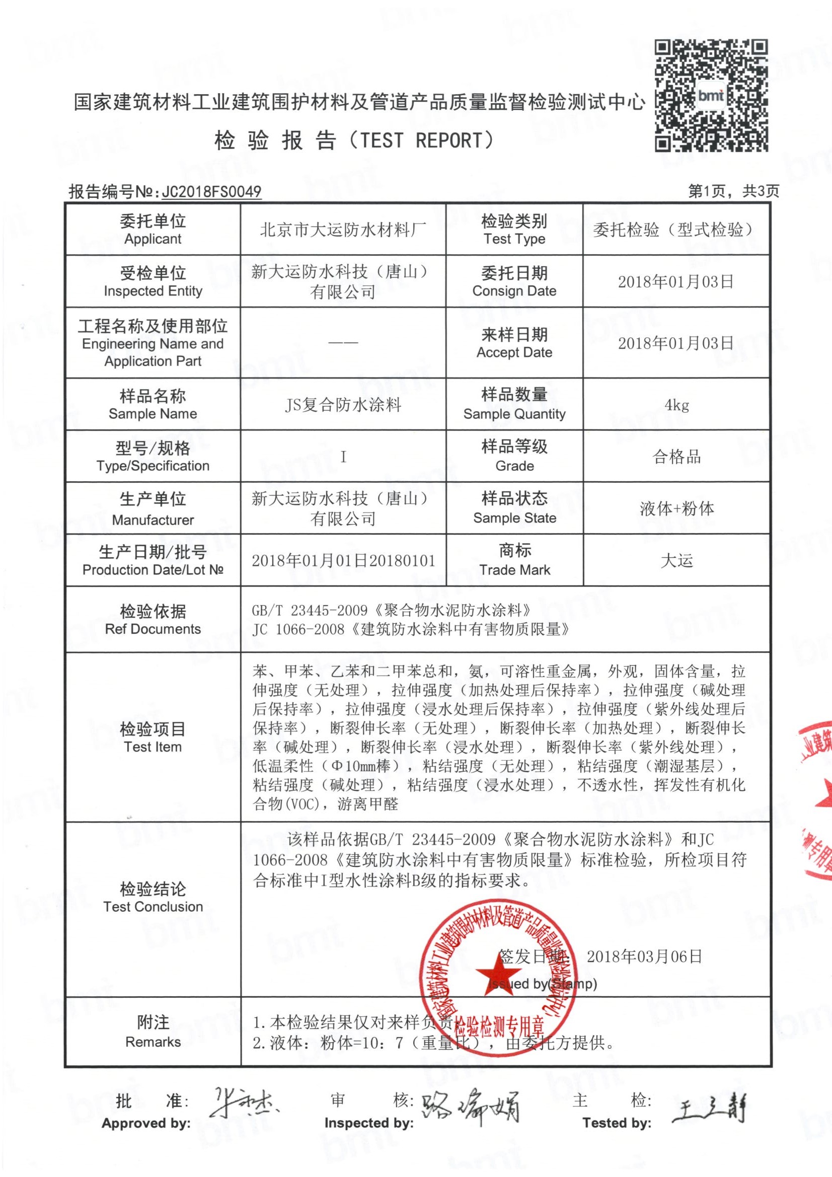 供应平台 > 新大运防水科技(唐山)有限公司 > JS复合防水涂料