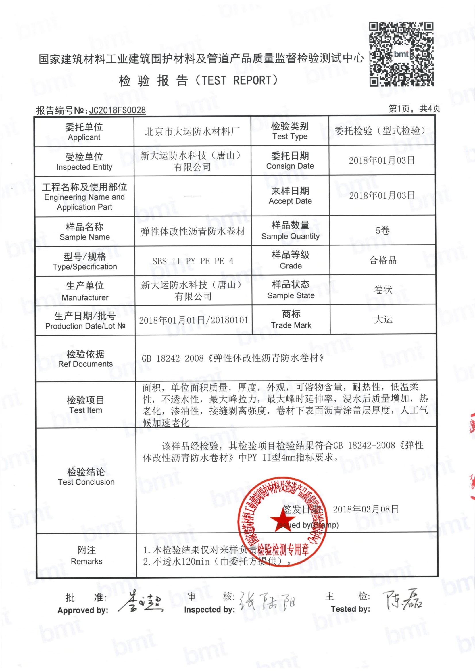 本产品系列采用SBS(APP)改性沥青浸渍和涂盖胎基,具有弹性大、抗拉强度和延伸率高、低温柔性好等特点。聚酯胎产品在此系列产品中性能最优。