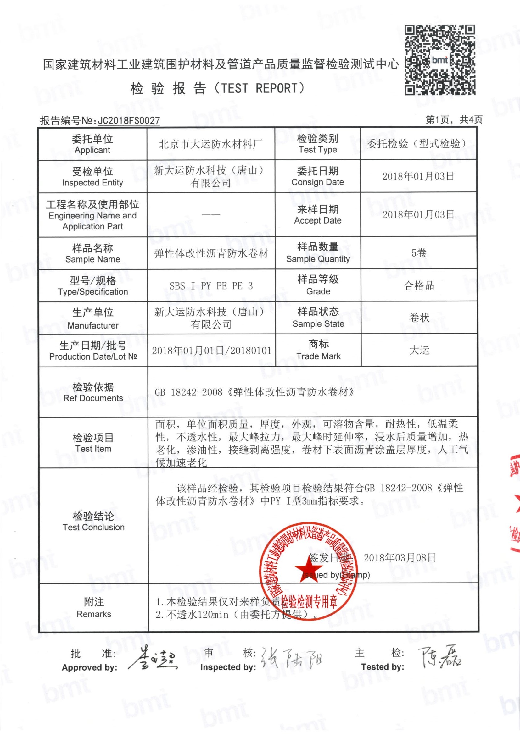 供应平台 > 新大运防水科技(唐山)有限公司 > SBS弹性体(塑性体)改性沥青防水卷材 -20° 3mm