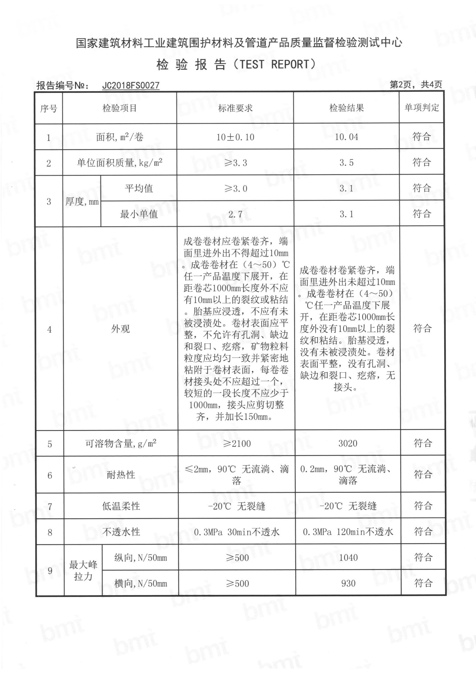 本产品系列采用SBS(APP)改性沥青浸渍和涂盖胎基,具有弹性大、抗拉强度和延伸率高、低温柔性好等特点。聚酯胎产品在此系列产品中性能最优。