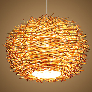 现代简约鸟巢藤艺灯农家乐创意灯具个性过道单头田园北欧餐厅吊灯