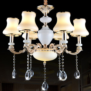 欧式水晶吊灯客厅灯卧室书房餐厅LED吊灯白玉玻璃锌合金装饰灯